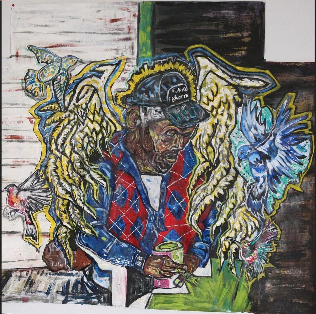 Elkino has also been privileged to teach at both the Finco Art Workshop and the National Art Gallery Mix Media Camps during his summer breaks.
